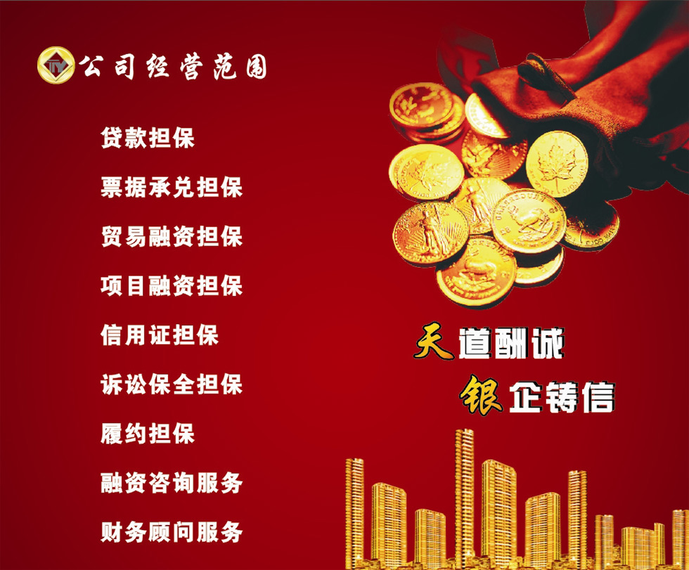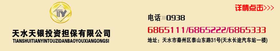 天水天銀投資擔(dān)保有限公司是融資性擔(dān)保機(jī)構(gòu),經(jīng)營許可證(甘620500003)。 安全可靠:專業(yè)擔(dān)保公司,為您的投資、融資提供全程全額擔(dān)保。 合法合規(guī):符合國家投融資政策,簽訂專業(yè)法律合同。 為中小企業(yè)及個人提供短期流動資金借款擔(dān)保。 為您的合法閑置資金投資收益進(jìn)行全程全額擔(dān)保,從而使您的資金獲得安全、穩(wěn)定、較高的收益,穩(wěn)定年收益12%起(按月付息)。 網(wǎng)址:http://www.tianyintz.com/ |