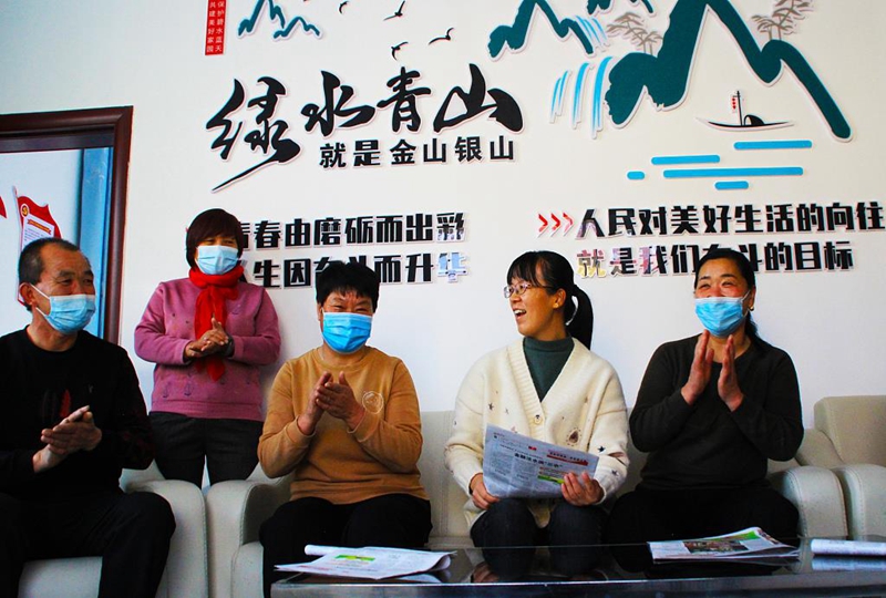 ▲新疆塔城地區(qū)裕民縣新地鄉(xiāng)新地西村村“兩委”干部、駐村工作隊隊員和村中老黨員一起學(xué)習(xí)黨的十九屆六中全會精神。