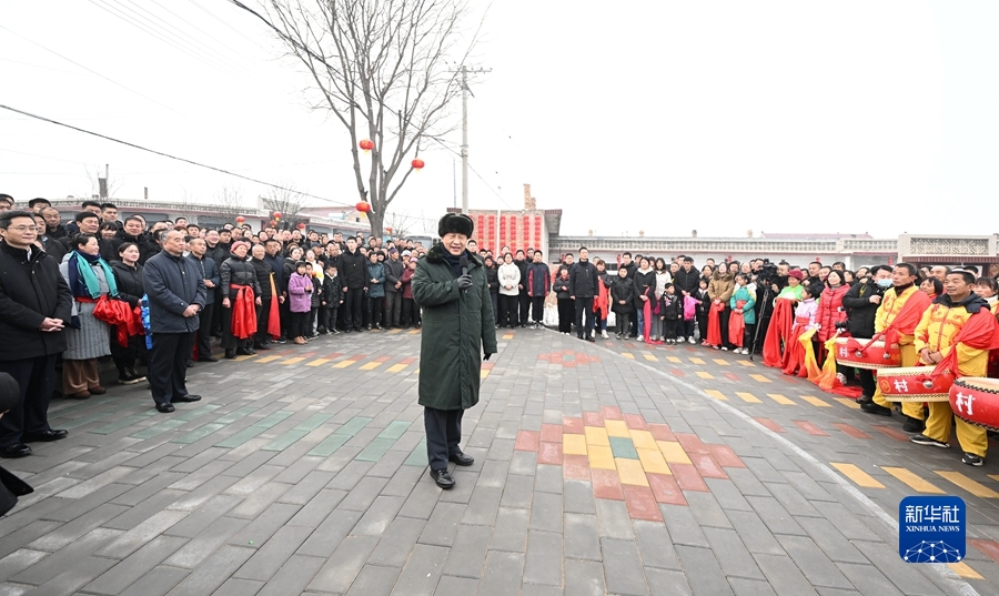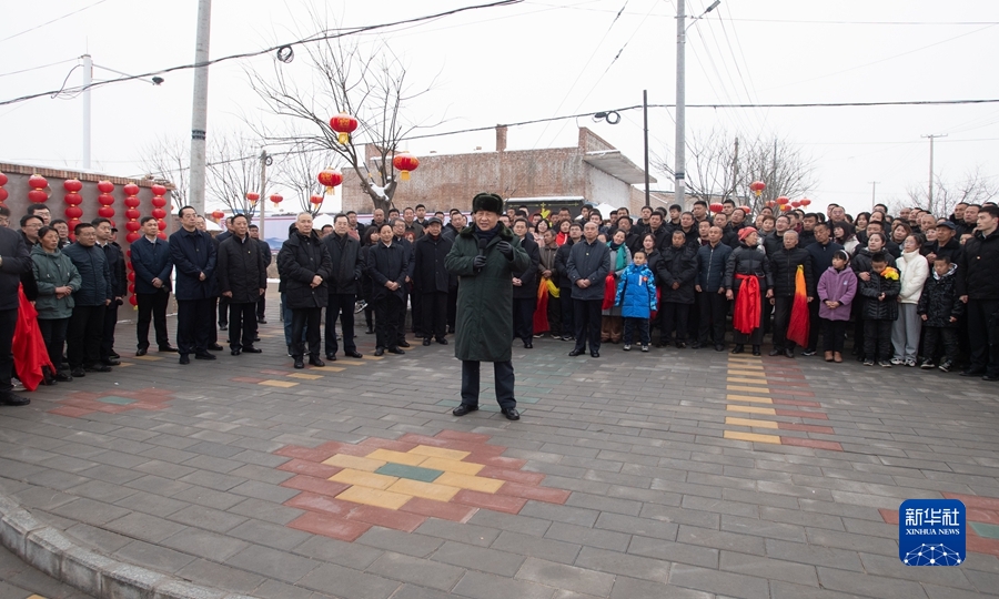 村文化廣場上十分熱鬧,村民們打起威風(fēng)鑼鼓、扭起秧歌歡慶佳節(jié)?吹娇倳泚砹耍藗兏吲d地歡呼起來。習(xí)近平對(duì)鄉(xiāng)親們說,我們黨的根本宗旨就是為人民群眾辦好事,為人民群眾幸福生活拼搏、奉獻(xiàn)、服務(wù)。我們?nèi)缙诖蜈A了脫貧攻堅(jiān)戰(zhàn),如期實(shí)現(xiàn)了全面建成小康社會(huì)目標(biāo),現(xiàn)在踏上了全面建設(shè)社會(huì)主義現(xiàn)代化國家新征程。建設(shè)現(xiàn)代化國家離不開農(nóng)業(yè)農(nóng)村現(xiàn)代化,要繼續(xù)鞏固脫貧攻堅(jiān)成果,扎實(shí)推進(jìn)鄉(xiāng)村振興,讓群眾生活更上一層樓,在推進(jìn)農(nóng)業(yè)農(nóng)村現(xiàn)代化中越走越有奔頭。