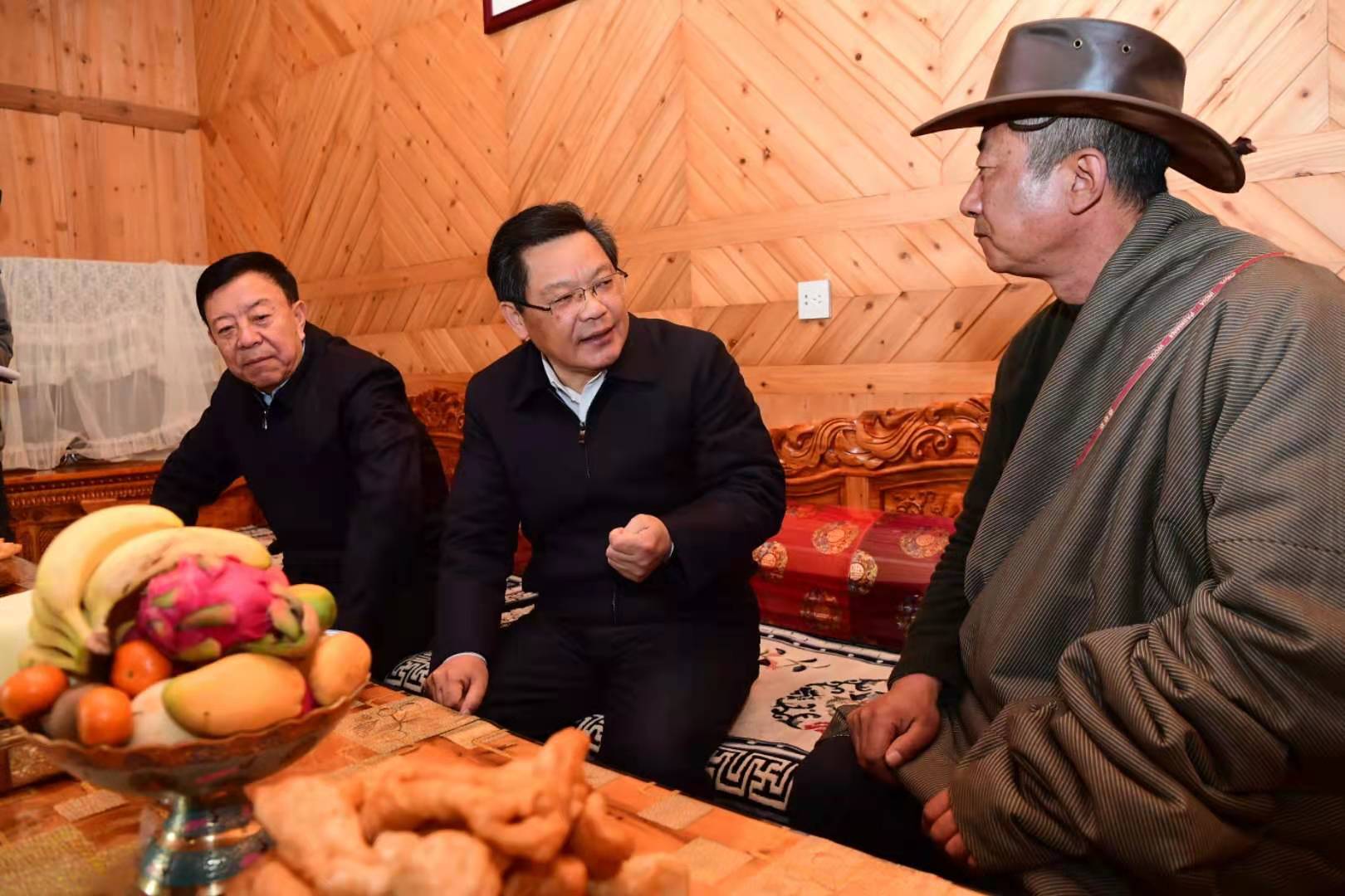 隨后,任振鶴來到合作市堅木克爾街道加拉尕瑪村,實(shí)地調(diào)研鄉(xiāng)村治理、民生保障等工作,通過隨機(jī)走訪,入戶與群眾親切交談,詳細(xì)詢問生產(chǎn)生活等有關(guān)情況。他指出,甘南州在決戰(zhàn)決勝脫貧攻堅中積累的有益經(jīng)驗(yàn)作法,切實(shí)轉(zhuǎn)變了農(nóng)牧民群眾的思想觀念、深度改變了他們的生產(chǎn)生活方式,也為下一步全面推進(jìn)鄉(xiāng)村振興奠定了堅實(shí)基礎(chǔ)。要牢固樹立綠水青山就是金山銀山的理念,堅定不移走生產(chǎn)發(fā)展、生活富裕、生態(tài)良好的文明發(fā)展道路,確保青山常在、綠水長流、空氣常新。要充分挖掘具有地域特色的文化旅游資源,加快補(bǔ)齊基礎(chǔ)設(shè)施短板,建設(shè)更多團(tuán)結(jié)路、幸福路、致富路,不斷聚集各類要素資源,有效助力全域旅游發(fā)展取得更大成績。要時刻把人民群眾的安危冷暖放在心上,全力做好保障和改善民生各項(xiàng)工作,不斷增強(qiáng)群眾的獲得感、幸福感、安全感。