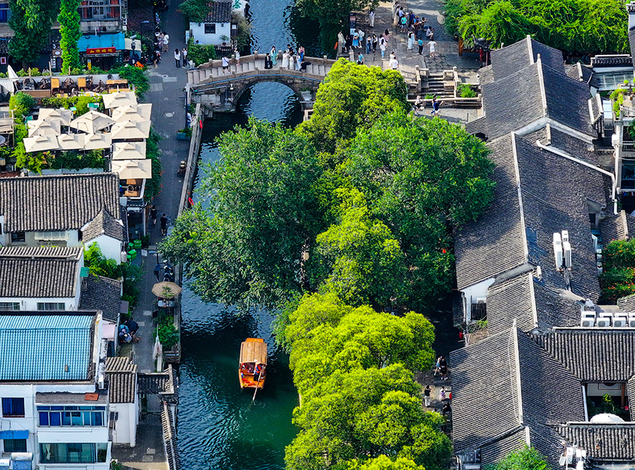 2023年7月3日拍攝的蘇州平江歷史文化街區(qū)(無(wú)人機(jī)照片)。新華社記者 李博 攝