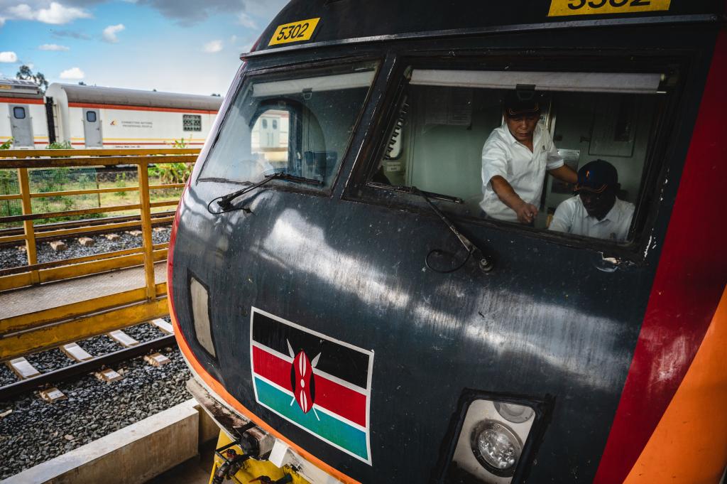 5月23日,在肯尼亞首都內羅畢,中國火車駕駛員蔣立平(左)與肯尼亞學員一道檢查蒙內鐵路機車。蒙內鐵路由中國企業(yè)承建,是中國和肯尼亞共建“一帶一路”的旗艦項目,2017年5月31日建成通車。(新華社記者王冠森攝)