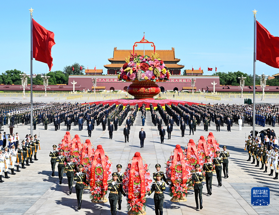9月30日上午,黨和國家領(lǐng)導(dǎo)人習(xí)近平、李強(qiáng)、趙樂際、王滬寧、蔡奇、丁薛祥、李希、韓正等來到北京天安門廣場,出席烈士紀(jì)念日向人民英雄敬獻(xiàn)花籃儀式。新華社記者 謝環(huán)馳 攝