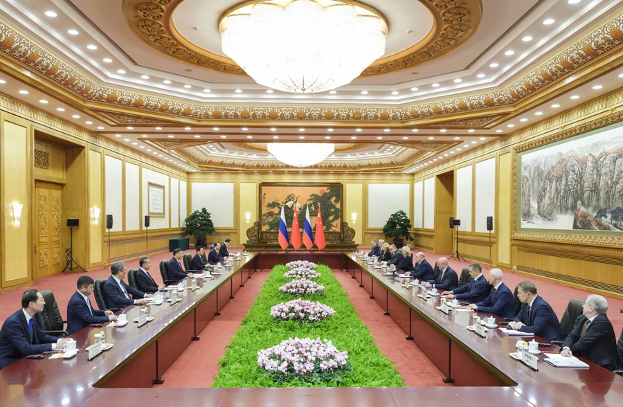 習(xí)近平強(qiáng)調(diào),中國經(jīng)濟(jì)韌性強(qiáng)、潛力大、回旋余地廣、長期向好的基本面沒有改變。中國堅(jiān)定推動(dòng)高質(zhì)量發(fā)展,推進(jìn)高水平對外開放,將為包括俄羅斯在內(nèi)的各國發(fā)展提供新機(jī)遇。雙方要充分發(fā)揮政治互信、經(jīng)濟(jì)互補(bǔ)、設(shè)施互聯(lián)、民心互通優(yōu)勢,不斷豐富合作內(nèi)涵,深化經(jīng)貿(mào)、能源、互聯(lián)互通等領(lǐng)域合作,共同維護(hù)產(chǎn)業(yè)鏈供應(yīng)鏈安全穩(wěn)定。雙方要辦好明后兩年中俄文化年,多設(shè)計(jì)、多開展豐富多彩的人文交流活動(dòng),夯實(shí)兩國世代友好的社會和民意基礎(chǔ)。