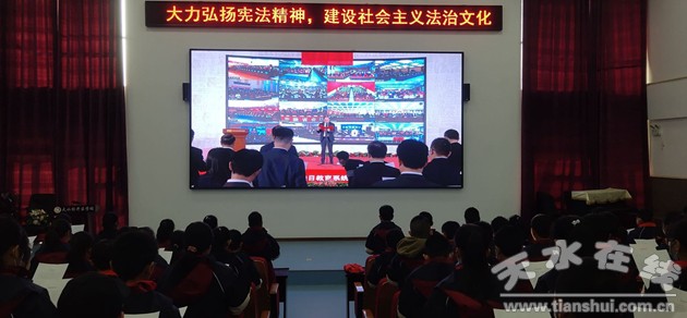 上午8時,全校師生在學(xué)校操場集會,隆重舉行升國旗儀式。儀式結(jié)束后,教師代表進(jìn)行了以《做一名知法、懂法、守法的好學(xué)生》為主題的國旗下演講。隨后,少先隊大隊輔導(dǎo)員向全體師生普及了第10個國家憲法日和憲法宣傳周相關(guān)知識。9時30分,全體學(xué)生分別在階梯教室和各班級教師,集中觀看并參與了教育部組織的教育系統(tǒng)“憲法晨讀”活動。同時,各班級還利用周末積極組織學(xué)生繪制憲法主題手抄報,參與憲法答題等相關(guān)活動。