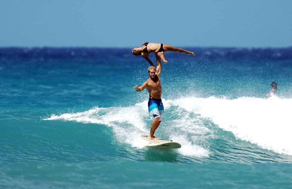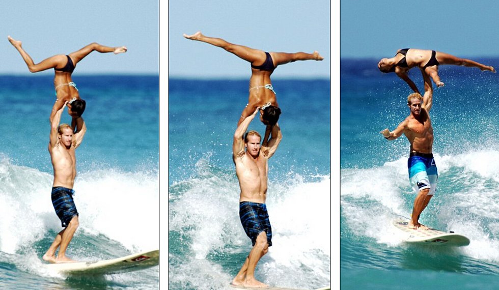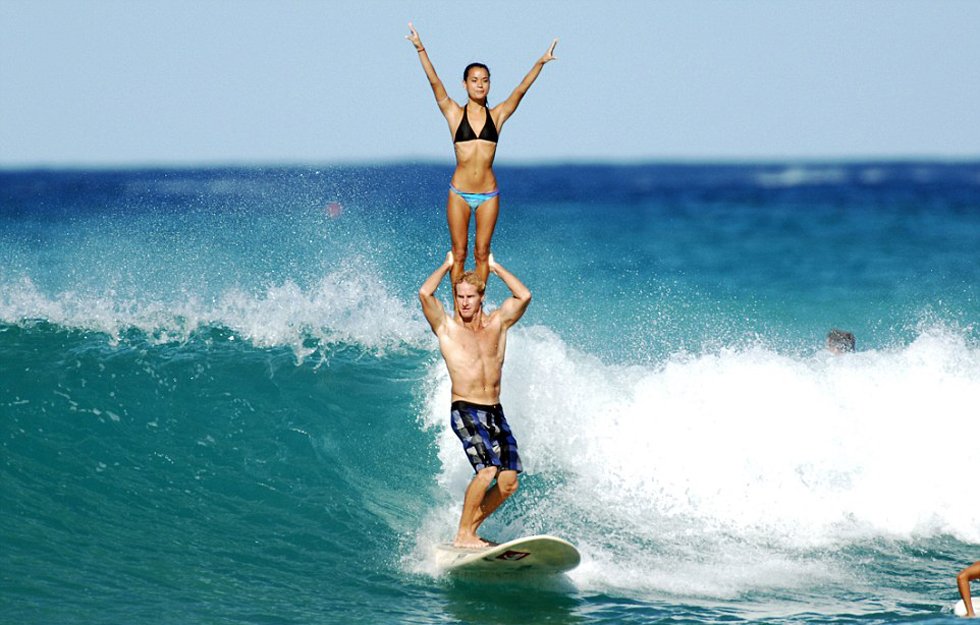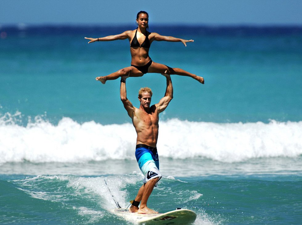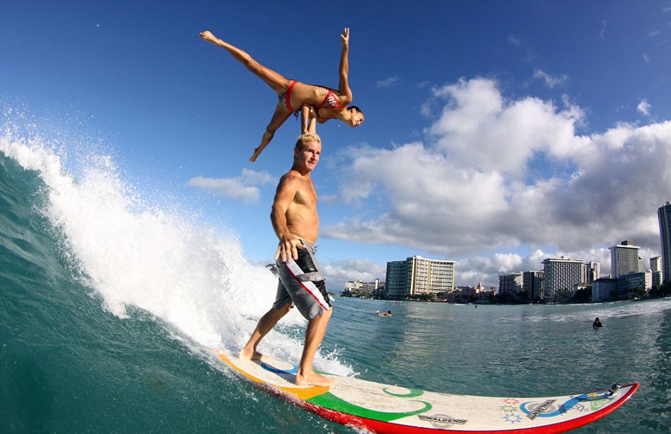 據(jù)英國《每日郵報》7月30日報道,近日,夏威夷威基基海灘上演了一場別開生面的雙人沖浪比賽秀。一對牛人搭檔勞倫·歐耶(Lauren Oiye)和查克·英曼(Chuck Inman)在串聯(lián)沖浪比賽中將體操和沖浪完美結(jié)合在了一起,用各種超乎想象的板上高難度托舉動作贏得滿堂喝彩。