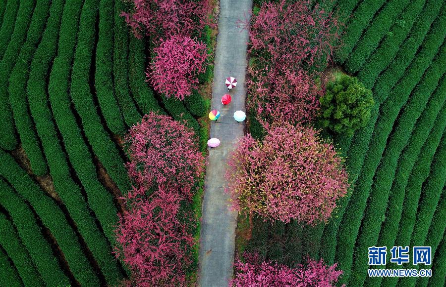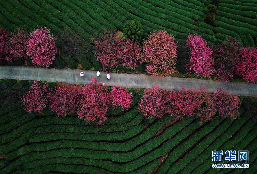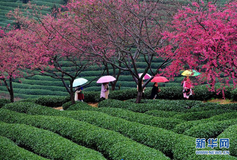 福建省漳平市永福鎮(zhèn)臺品櫻花茶園美景如畫,吸引游客冒雨賞花(1月31日攝)。立春臨近,福建省漳平市永福鎮(zhèn)臺品櫻花茶園里的幾千株早春櫻花進入花期,櫻花沿著茶山小道漫山開放,仿佛一條條纏繞在山間的彩帶,在綠色茶園的映襯下分外艷麗。近年來,為進一步做強櫻花觀光產業(yè),永福鎮(zhèn)又在多個山頭廣種櫻花,將賞花期從40天拉長到3個月,每年1-3月,永福鎮(zhèn) “十里櫻花漫山開”的盛景成為當地一張燙金的旅游名片。 新華社記者魏培全攝