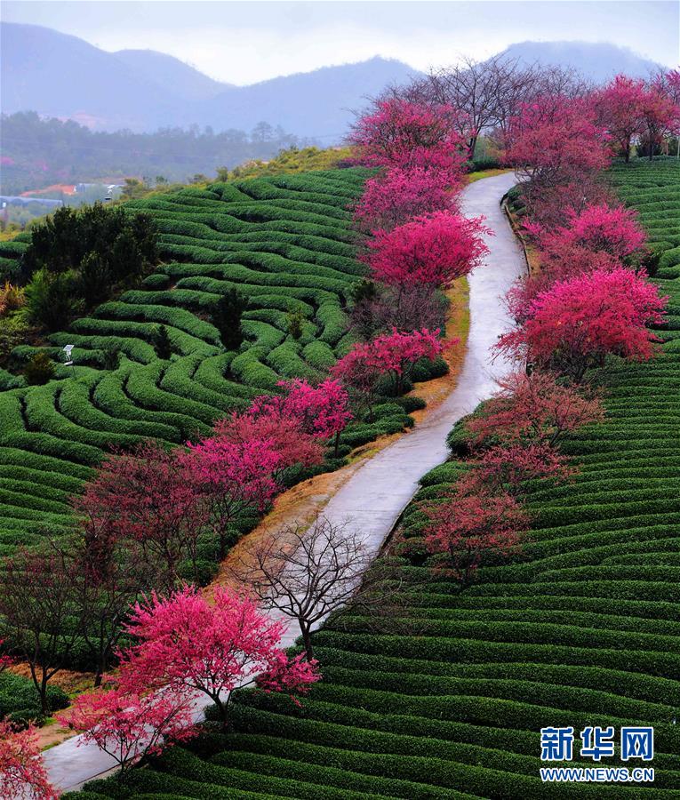 福建省漳平市永福鎮(zhèn)臺品櫻花茶園美景如畫(1月31日攝)。