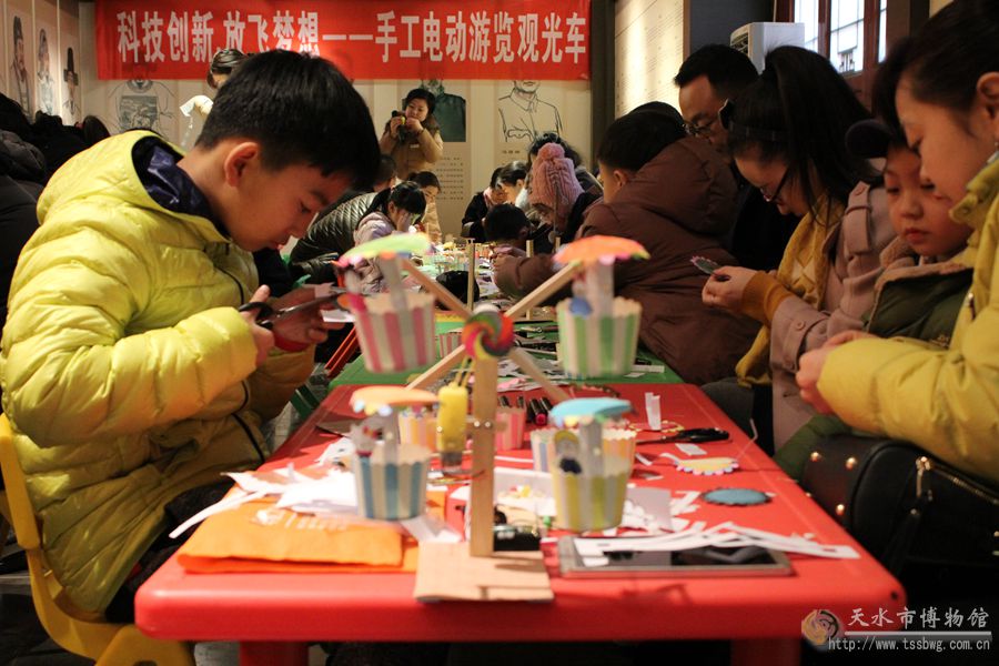 天水市博物館2017年春節(jié)期間,開展了“博物館里七天樂,歡歡喜喜過大年” 系列親子活動;顒佑泄(jié)慶風俗傳統(tǒng)文化、傳統(tǒng)手工小制作、科普創(chuàng)新小制作、博物館英語知識及英語趣味游戲等,內(nèi)容豐富,形式多樣。此次活動的目的,是結(jié)合學生假期生活,通過親子活動,增進家長與孩子之間的情感,提高孩子的綜合能力。