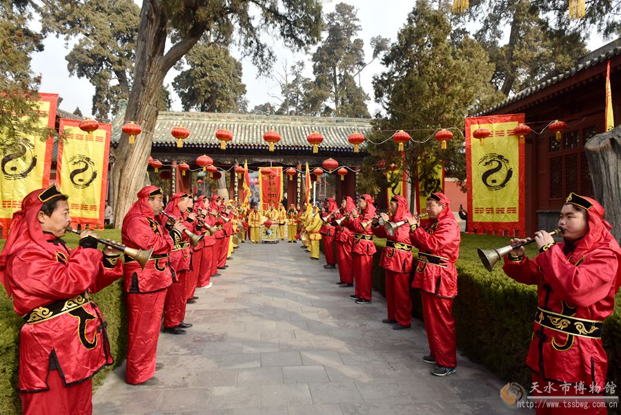 2月11日(農(nóng)歷正月十五日)上午,伏羲廟戲樓前青煙繚繞,古樂悠悠。伴隨著羊皮鼓“咚咚”的樂曲,中國最古老的祭祀儀式——開山攢神儀式正在這里隆重舉行。楊朝水等6位祭司身著傳統(tǒng)服飾,邁著神秘近乎癡狂的舞步,為廣大群眾展示了這一傳統(tǒng)而又神秘的祭祀儀式。
