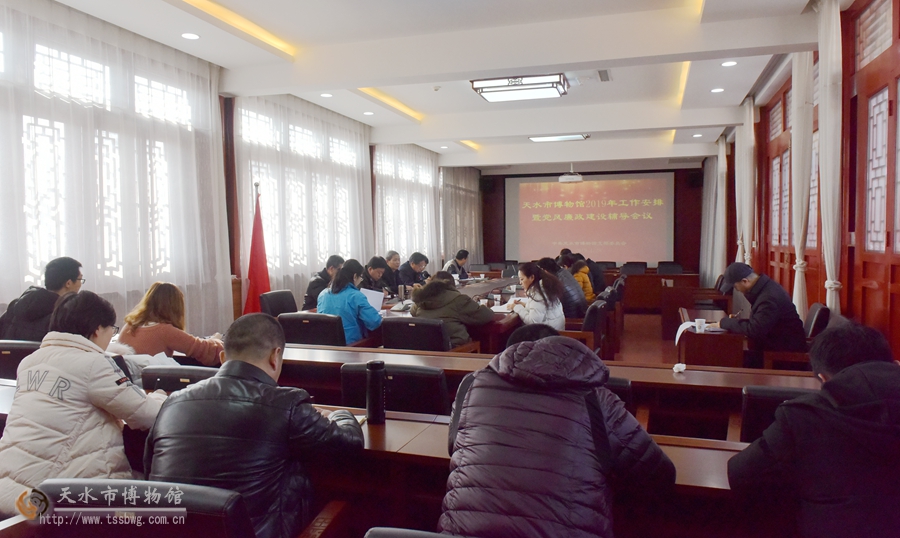 1月28日,天水市博物館在暢和軒召開2019年工作安排暨黨風(fēng)廉政建設(shè)輔導(dǎo)會,會議由市博物館黨支部書記、館長李寧民主持,天水市紀(jì)委監(jiān)委第三派駐紀(jì)檢監(jiān)察組副組長王鐵軍應(yīng)邀出席會議,副館長高世華、劉玉璞、管玉、汪保全以及各部室主任近30人參加會議。