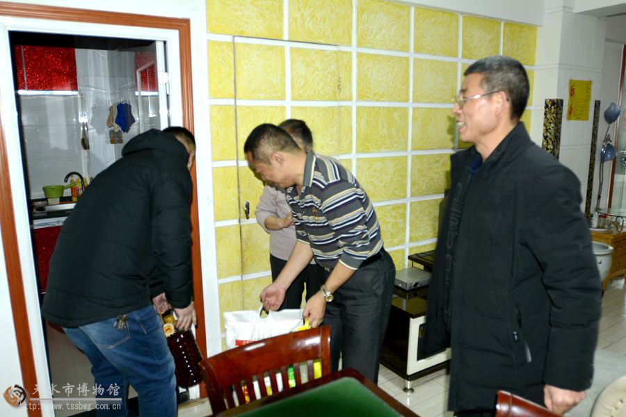 2月1日,天水市博物館黨支部書記、館長,天水市伏羲廟管理局局長李寧民和副館長高世華、汪保全一行,帶著全館職工的新春祝福和問候,走訪慰問了王彥俊、王煥新兩位去世職工的家屬,了解了他們的生活近況及存在的困難,同時(shí)送上了米、面、油等生活用品,并為其送去了慰問金,希望他們保重身體,度過一個(gè)祥和的春節(jié)。