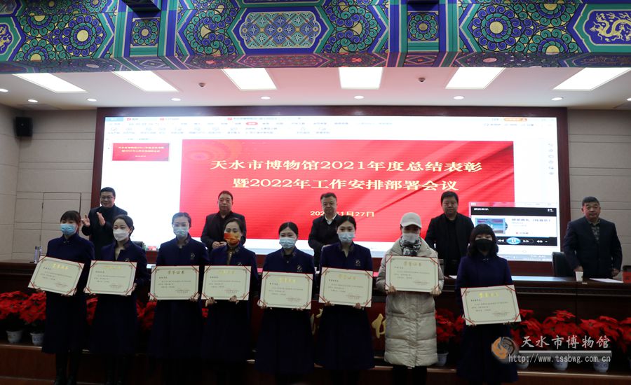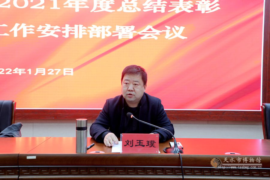 為貫徹落實(shí)省、市委和市文化和旅游局黨組的決策部署,總結(jié)過(guò)去一年取得的成績(jī),安排2022年重點(diǎn)工作,1月27日下午,天水市博物館召開了2021年度總結(jié)表彰暨2022年工作安排部署會(huì)議。市文化和旅游局副局長(zhǎng)、市文物局局長(zhǎng)劉宗林出席會(huì)議并講話。市博物館黨總支書記、館長(zhǎng)劉玉璞代表班子總結(jié)了2021年的工作并就2022年的重點(diǎn)工作進(jìn)行了安排部署。副館長(zhǎng)管玉、高世華、崔文剛和全體干部職工參加會(huì)議。會(huì)議由崔文剛主持。