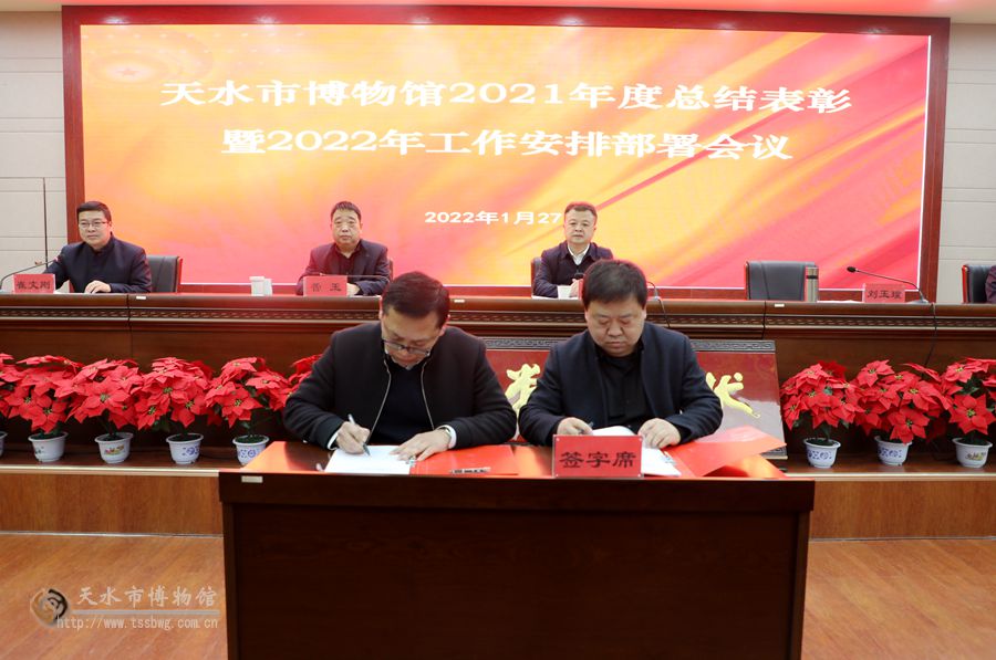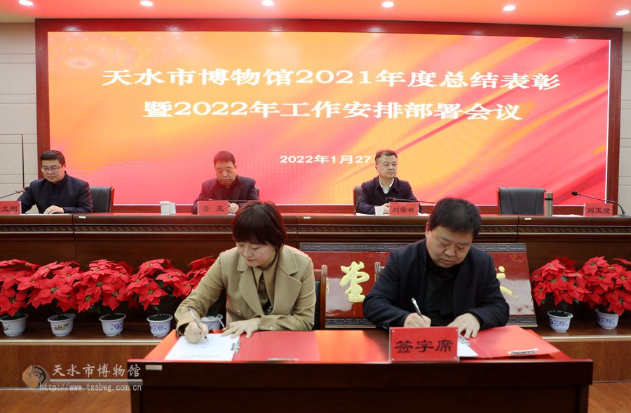 會(huì)議對(duì)2021年度目標(biāo)管理和黨風(fēng)廉政建設(shè)責(zé)任先進(jìn)部室、安全目標(biāo)工作先進(jìn)部室、精神文明建設(shè)先進(jìn)部室、招聘職工考核優(yōu)秀人員、疫情防控先進(jìn)個(gè)人、優(yōu)秀志愿者及“伏羲杯”微視頻創(chuàng)作大賽獲獎(jiǎng)人員進(jìn)行了表彰獎(jiǎng)勵(lì);館領(lǐng)導(dǎo)與各部室主任簽訂了《2022年目標(biāo)管理和黨風(fēng)廉政建設(shè)責(zé)任書》。
