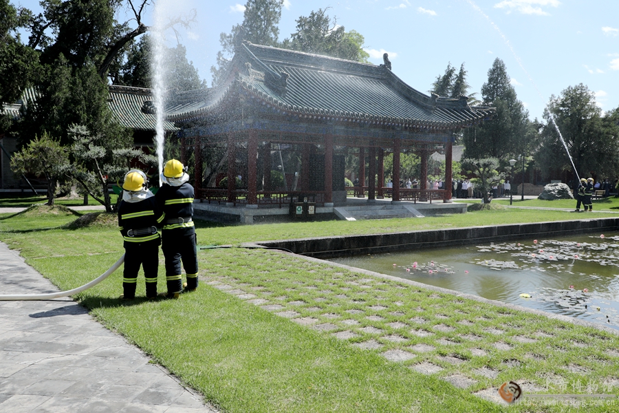 演練活動中,隨著“注意,發(fā)生地震,請緊急避險”的廣播響起,所有工作人員采取躲在墻角雙手抱頭下蹲、鉆入桌子下用堅硬的木板等遮擋頭部蹲下等應(yīng)急避險措施;約20秒后,廣播再次提示“安全撤離”口令,所有人員有序跑出辦公區(qū)域,在院子中央集中,由部室主任清點人數(shù),并向館領(lǐng)導(dǎo)匯報各自人員情況;職工在博物館展廳進(jìn)行“參觀”時,聽到疏散廣播后在展廳工作人員的疏導(dǎo)下有序跑出展廳;搶險組緊急攜帶擔(dān)架前往展廳,救出受傷和被困人員;應(yīng)急搶險組迅速進(jìn)入展廳,統(tǒng)計文物受損情況,并轉(zhuǎn)移重要文物至文物庫房。消防報警后,保衛(wèi)人員立即前往微型消防站著裝,并分別啟動后花園東、西地下消火栓,對見易亭古建筑進(jìn)行兩面夾擊滅火。整個活動結(jié)束后,演練活動總指揮劉玉璞做了總結(jié)講話,他表示,開展2022年地震、消防等安全生產(chǎn)綜合應(yīng)急演練活動,是提高全館職工自救自護(hù)能力,真正掌握在危險中迅速逃生、自救、互救的基本方法,希望大家能夠重視演練,牢固樹立人民至上、生命至上理念,堅持預(yù)防為主、防救結(jié)合的方針,總結(jié)經(jīng)驗,尋找差距,彌補不足,提升緊急疏散和應(yīng)對突發(fā)事件能力。此次地震、消防等安全生產(chǎn)綜合應(yīng)急演練活動取得了預(yù)期效果,活動圓滿結(jié)束。