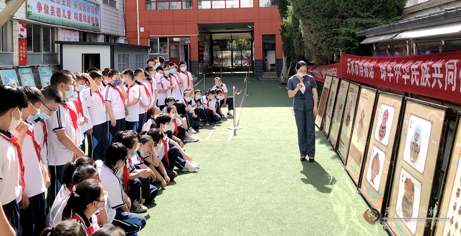 在天水市實(shí)驗(yàn)小學(xué)操場(chǎng),我館宣教人員結(jié)合天水市博物館“鑄牢中華民族共同體意識(shí)”宣傳展覽,為全校師生講述“淘氣淘器”背后的故事。 \