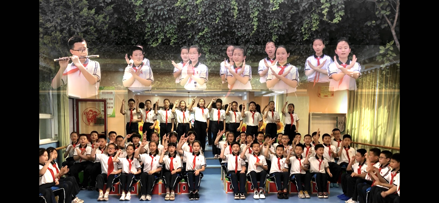 伴隨著《半生雪》的音樂(lè)聲,天水市實(shí)驗(yàn)小學(xué)的學(xué)生們以齊唱加手勢(shì)舞的方式,用歌聲放飛著學(xué)生繽紛的夢(mèng)想;用歌聲唱響著少先隊(duì)員們心中的激蕩;用歌聲詮釋著對(duì)祖國(guó)濃濃的純真情感。