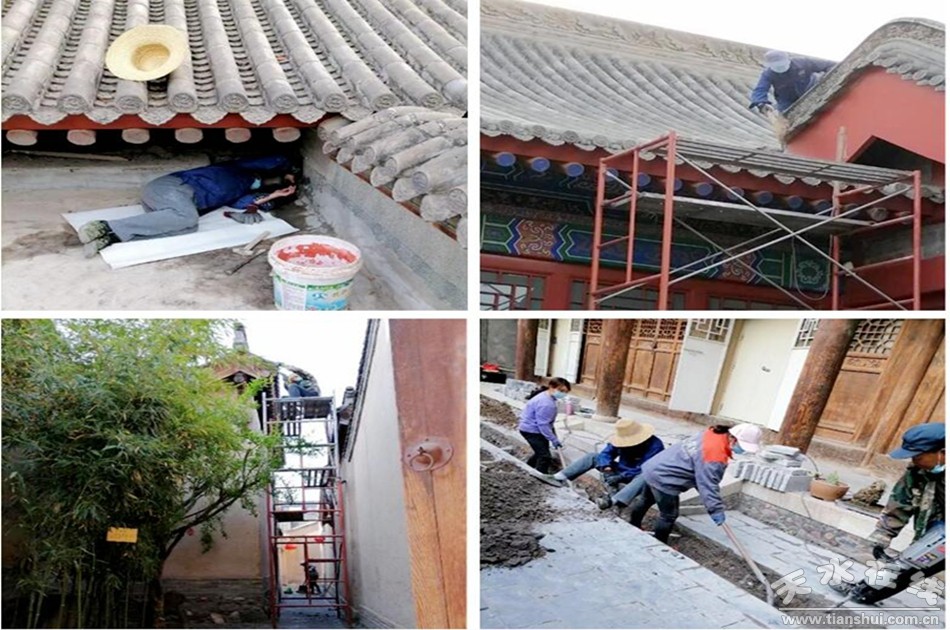 二是積極向上級部門申請對伏羲廟古建筑保護(hù)維修的同時,加大對古建筑屋面的日常維護(hù)。利用疫情閉館的時間,在雨季來臨之前,對存在漏水隱患的15處屋面進(jìn)行了維修,對天水民俗博物館破損的瓦片進(jìn)行了更換,對屋面雜草、落葉進(jìn)行了清掃。
