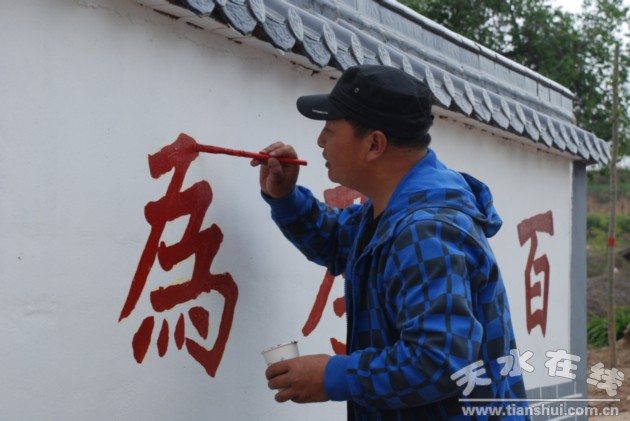 天水市文化館赴清水縣賈川鄉(xiāng)雙聯(lián)點(diǎn)繪畫文化墻(圖)
