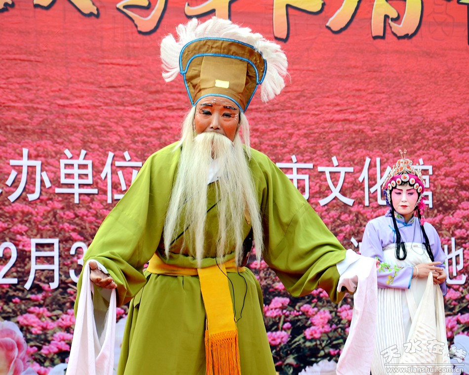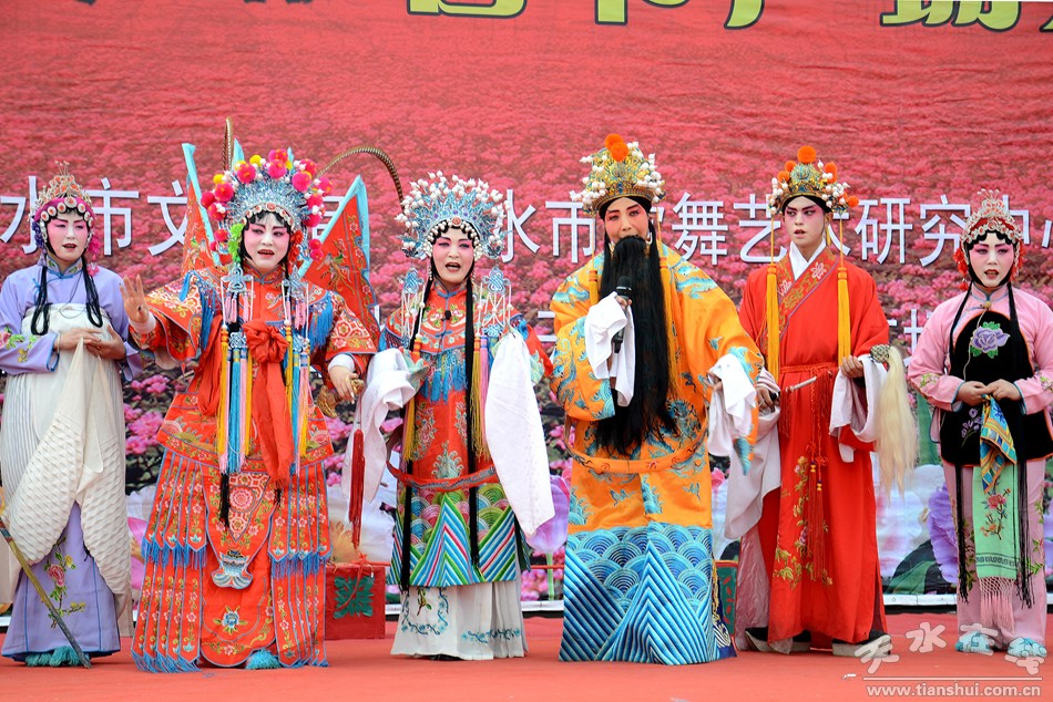 秦州小曲是天水民間傳統(tǒng)曲藝,也屬于甘肅省省級非物質(zhì)文化遺產(chǎn)項(xiàng)目。主要流傳于秦州區(qū)。這次秦州小曲的表演隊(duì)是皂郊鎮(zhèn)賈家寺村曲藝隊(duì), 秦州小曲以演唱具有人文情節(jié)的劇目(折子或段子)為主,配以文、武、器樂組合而成的完整的漢族傳統(tǒng)曲藝表演形式。這次表演的節(jié)目是《看女》、《打櫻桃》、《下四川》等。