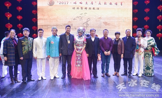 天水市文化館專門組隊參加了本次民歌大賽并獲得了優(yōu)異的成績。由市文化館王小艷演唱的原創(chuàng)歌曲《羲皇故里》榮獲一等獎,天水市歌舞研究中心蘇珍祥演唱的歌曲《甘肅老家》、麥積區(qū)文化館李青演唱的歌曲《黃河漁娘》分別榮獲二等獎。三位選手以精湛的演唱、完美的舞臺表現(xiàn)力獲得了評委、各參賽隊的一致好評。