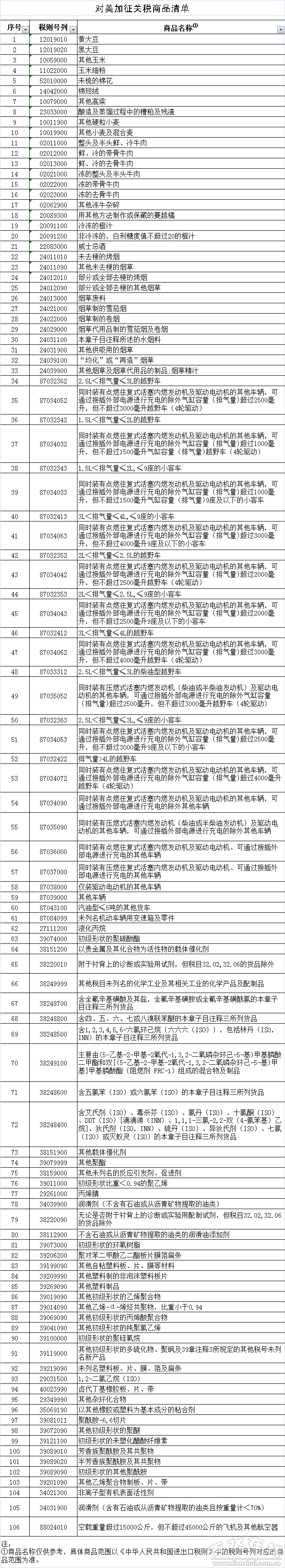 根據(jù)《中華人民共和國對外貿(mào)易法》和《中華人民共和國進(jìn)出口關(guān)稅條例》相關(guān)規(guī)定,經(jīng)國務(wù)院批準(zhǔn),國務(wù)院關(guān)稅稅則委員會決定對原產(chǎn)于美國的大豆、汽車、化工品等14類106項商品加征25%的關(guān)稅。實施日期將視美國政府對我商品加征關(guān)稅實施情況,由國務(wù)院關(guān)稅稅則委員會另行公布。