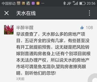 天水市房管局嚴查房企違規(guī)預(yù)售行為,網(wǎng)民紛紛點贊!