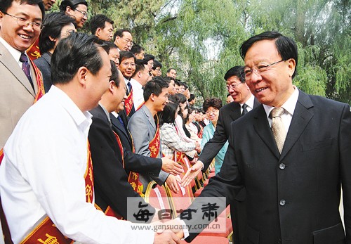 9月10日上午,我省慶祝第24個教師節(jié)暨優(yōu)秀教師表彰大會在蘭州市寧臥莊禮堂舉行。表彰大會后,省委書記、省人大常委會主任陸浩,省委副書記、省長徐守盛等省上領(lǐng)導(dǎo)會見了出席大會的先進集體和個人代表,并合影留念!”緢笥浾 張鐵梁 攝