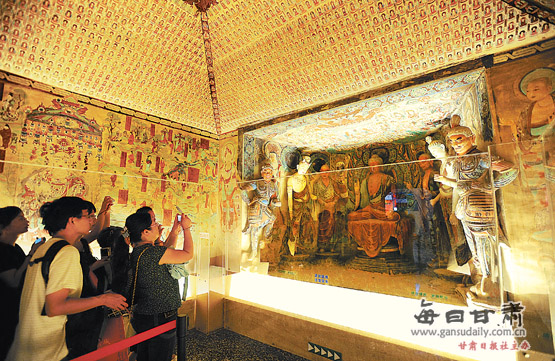 (9月10日,上海世博會(huì)甘肅展館內(nèi)神秘的“莫高窟”吸引眾多中外游客參觀。)
