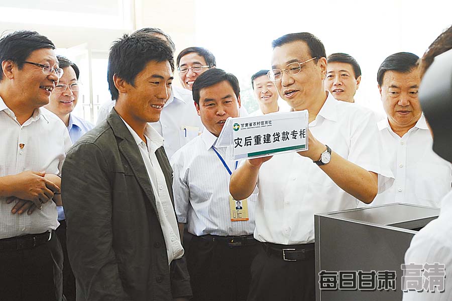 岷縣農(nóng)村信用社設(shè)立災(zāi)后重建貸款專柜受到李克強(qiáng)總理的贊揚(yáng)。