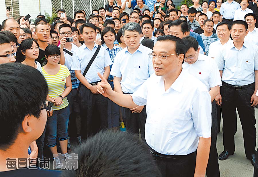 李克強(qiáng)總理與蘭州大學(xué)師生親切交流。