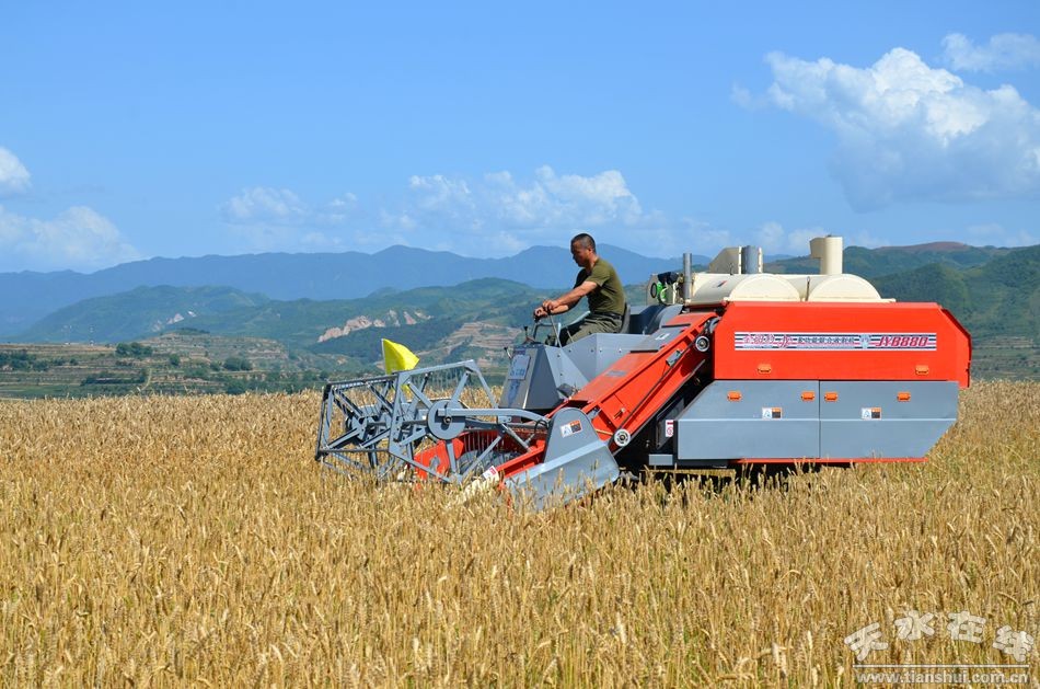 甘肅日報(bào)蘭州訊(記者孫海峰)進(jìn)入6月中下旬,隨著慶陽、平?jīng)觥⑻焖、隴南4市冬麥區(qū)“開鐮”,我省小麥跨區(qū)機(jī)收作業(yè)從東到西也正式啟動(dòng)。今年,全省1100多萬畝小麥?zhǔn)斋@中,機(jī)收面積有望超過760萬畝以上,機(jī)收水平預(yù)計(jì)達(dá)到66%!叭摹逼陂g,來自山東、江蘇、河南、四川、陜西、寧夏等省區(qū)及省內(nèi)的7500多臺(tái)聯(lián)合收割機(jī)將參加我省的小麥跨區(qū)機(jī)收大會(huì)戰(zhàn)。截至6月27日,隴東及南部4市已完成收獲面積301.77萬畝,機(jī)收小麥達(dá)231.78萬畝。
