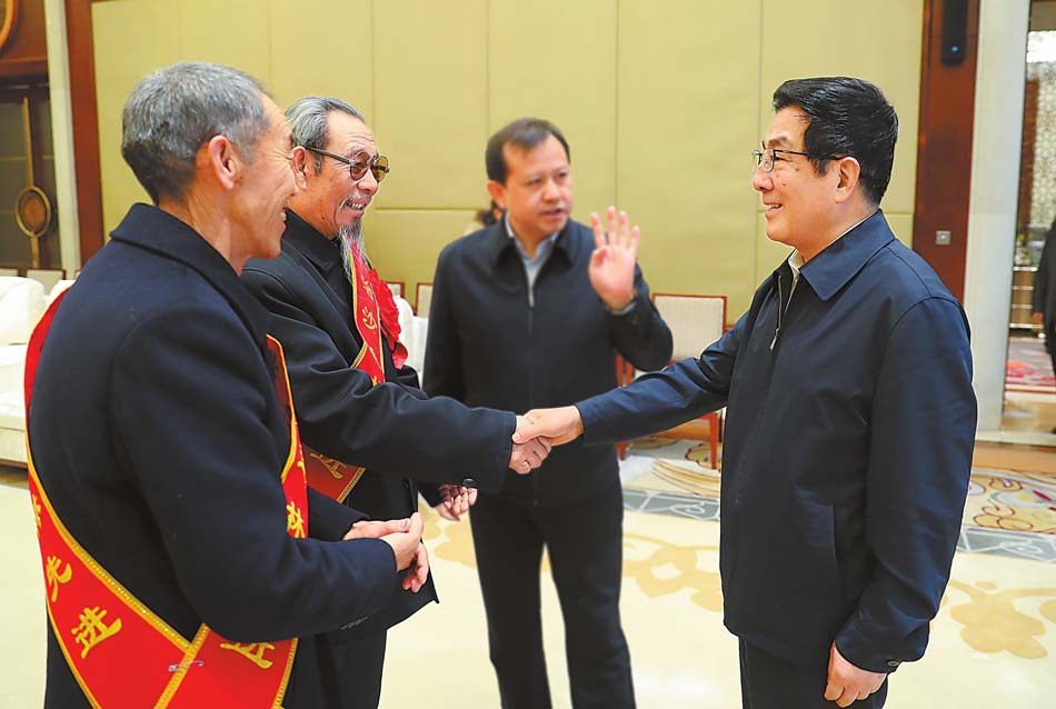 12月28日,省委書記、省人大常委會主任林鐸在蘭州接見了古浪縣八步沙林場“六老漢”三代人治沙造林先進集體代表。本報記者 高檣