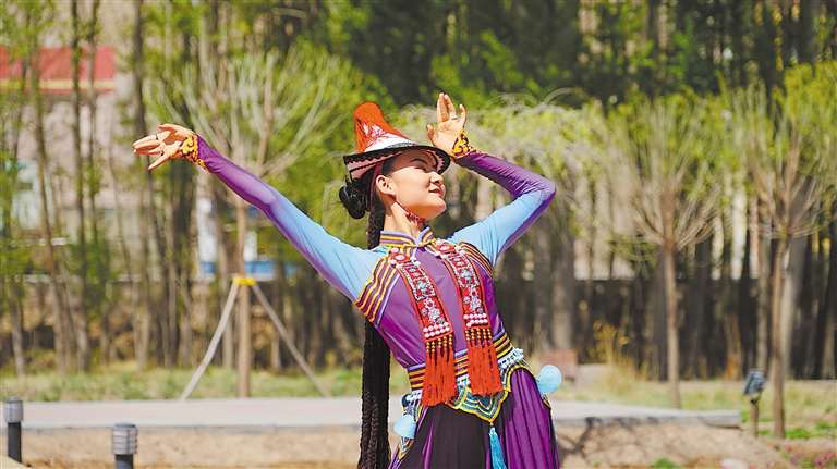 能歌善舞的裕固族姑娘翩翩起舞。