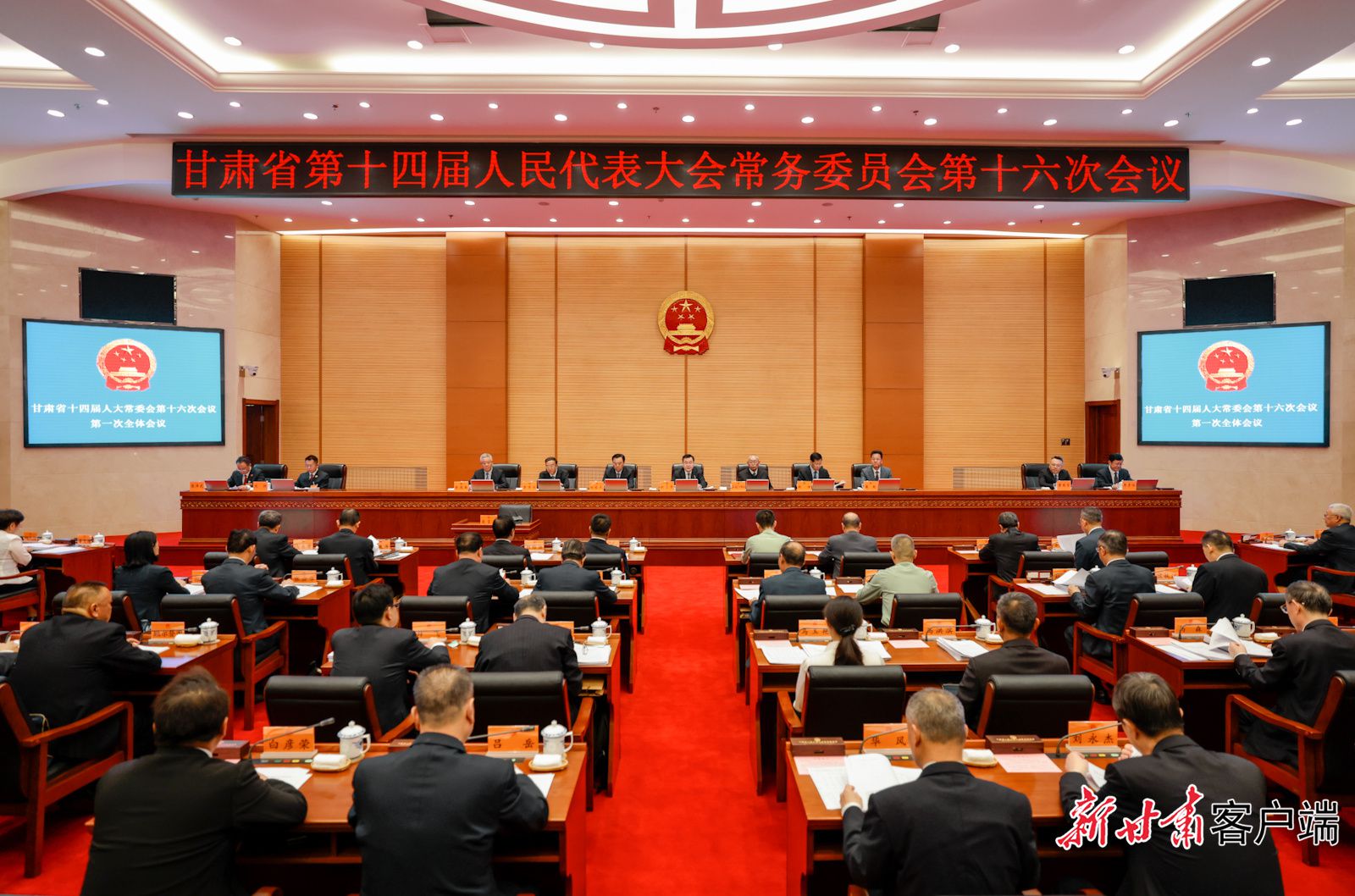 省人大常委會副主任嘉木樣·洛桑久美·圖丹卻吉尼瑪、馬廷禮、胡焯、李沛興、戴超,秘書長李德新及委員61人出席會議。