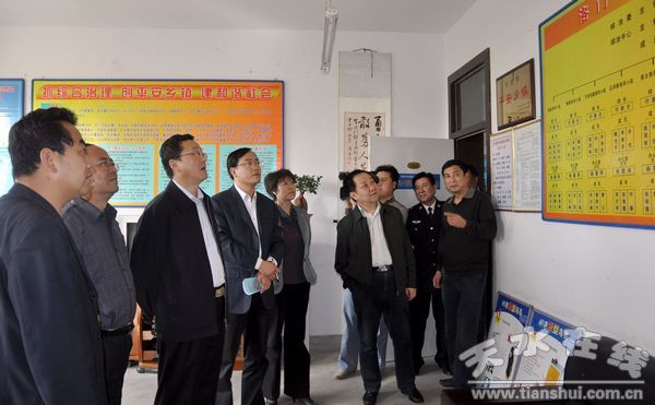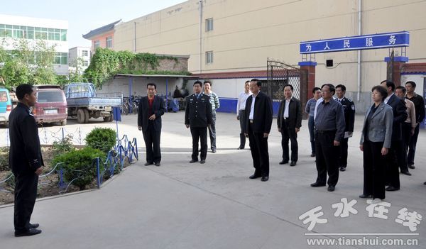 羅笑虎一行先后深入甘谷縣西北部農(nóng)村飲水安全工程、南街小學(xué)及幼兒園、縣法院審判大樓、六峰鎮(zhèn)、城關(guān)派出所、縣公安局進(jìn)行督查指導(dǎo)。