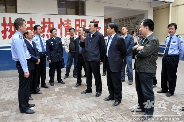 5月7日,甘肅省委常委、省委政法委書記、省公安廳廳長(zhǎng)羅笑虎在甘谷督查指導(dǎo)綜治維穩(wěn)工作。天水市委常委、政法委書記韓岱成,市委副秘書長(zhǎng)王祥林,市長(zhǎng)助理、市公安局局長(zhǎng)呂淙江,甘谷縣委書記王子生,縣委副書記、縣長(zhǎng)賈忠慧,縣委常委、常務(wù)副縣長(zhǎng)郭世文,縣委常委、政法委書記邵宏偉陪同督查。