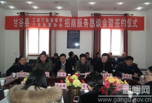 12月19日,甘谷縣召開浙江商貿(mào)城招商服務(wù)懇談會(huì)暨簽約儀式。市工商局黨組成員、副局長(zhǎng)李新民,縣委常委、統(tǒng)戰(zhàn)部長(zhǎng)馬驥,縣人大常委會(huì)副主任王百家,縣政協(xié)副主席王金生出席懇談會(huì)。浙江商貿(mào)城負(fù)責(zé)人及入駐企業(yè)代表、縣工商局班子成員、科所長(zhǎng)共計(jì)50余人參加會(huì)議。會(huì)議由縣工商局副局長(zhǎng)、縣個(gè)私協(xié)會(huì)會(huì)長(zhǎng)夏訓(xùn)杰主持。