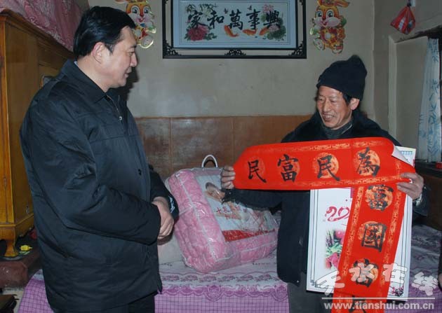 1月21日,天水市委常委、政法委書記趙衛(wèi)東到“雙聯(lián)”點——甘谷縣安遠鎮(zhèn)蔣山村看望慰問了聯(lián)系戶,向他們表示親切問候和新春的祝福,送去了慰問金和慰問品。縣委常委、政法委書記邵宏偉陪同。
