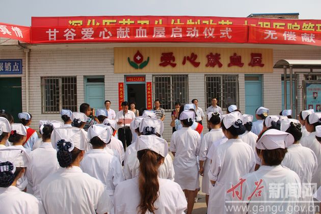 8月22日,天水市中心血站甘谷愛心獻血屋啟動儀式在甘谷縣醫(yī)院隆重舉行,市衛(wèi)生局副局長劉和平,市中心血站站長楊春曉、副站長安有水,副縣長潘慧琴出席啟動儀式,縣衛(wèi)生局、縣醫(yī)院負責人和甘谷愛心獻血屋工作人員參加啟動儀式。