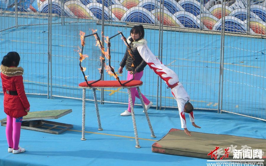 為熱烈慶祝新春佳節(jié),進一步豐富市民精神文化生活,商貿城專門邀請河北省吳橋雜技馬戲團前來甘谷,精心編排了集體蹬技、高臺定車、獅虎打滾、羊走鋼板、羊站花瓶、羊角倒立、小狗滾筒等26個動物表演和和雜技節(jié)目。