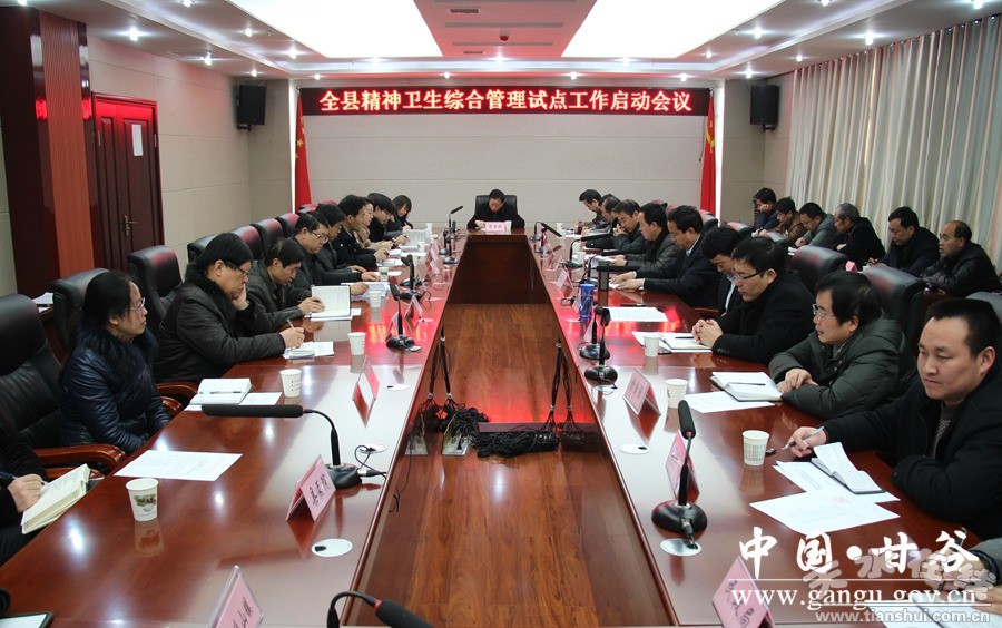 1月6日,甘谷縣召開精神衛(wèi)生綜合管理試點工作啟動會議。甘谷縣委常委、宣傳部長張慶元主持會議并講話?h精神衛(wèi)生工作領(lǐng)導小組成員單位及各鄉(xiāng)鎮(zhèn)精神衛(wèi)生工作負責人參加會議。