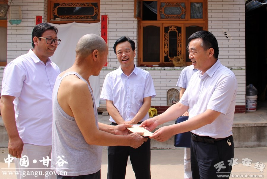 在建黨96周年來(lái)臨之際,6月28日至29日,甘谷縣委副書(shū)記汪聚應(yīng)、任佩光,縣委常委、紀(jì)委書(shū)記謝輝,縣委常委、常務(wù)副縣長(zhǎng)孟曉龍,縣委常委、組織部長(zhǎng)馮建新,縣委常委、宣傳部長(zhǎng)張慶元,縣委常委、統(tǒng)戰(zhàn)部長(zhǎng)王剛,縣委常委、政法委書(shū)記馮全敬,縣委常委、大像山鎮(zhèn)黨委書(shū)記葛彥迪,縣人大常委會(huì)副主任王金生、謝興明、劉仰賢、劉永仁、李富國(guó)、頡明軍,副縣長(zhǎng)牛武軍、郭中校、楊宏、高麗,縣政協(xié)副主席董成斌、田小龍、鄭建子、馬清平分別深入鄉(xiāng)鎮(zhèn)、部門、單位,走訪慰問(wèn)老黨員、困難黨員和優(yōu)秀知識(shí)分子黨員,為他們送去黨和政府的溫暖與關(guān)懷。
