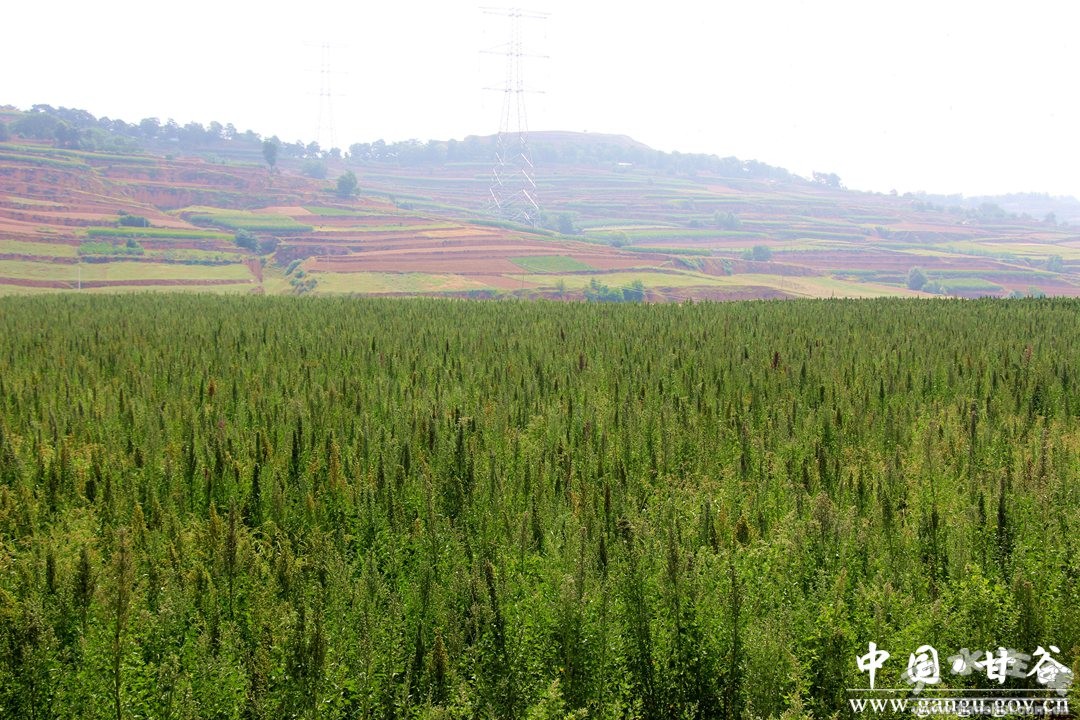 近日,記者來到甘谷縣大田園生態(tài)農(nóng)業(yè)專業(yè)合作社,但見風(fēng)吹谷浪,綿延整個(gè)糜谷川口,赤橙黃綠青藍(lán)紫的藜麥將整個(gè)川口點(diǎn)綴成一幅色彩斑斕的畫。