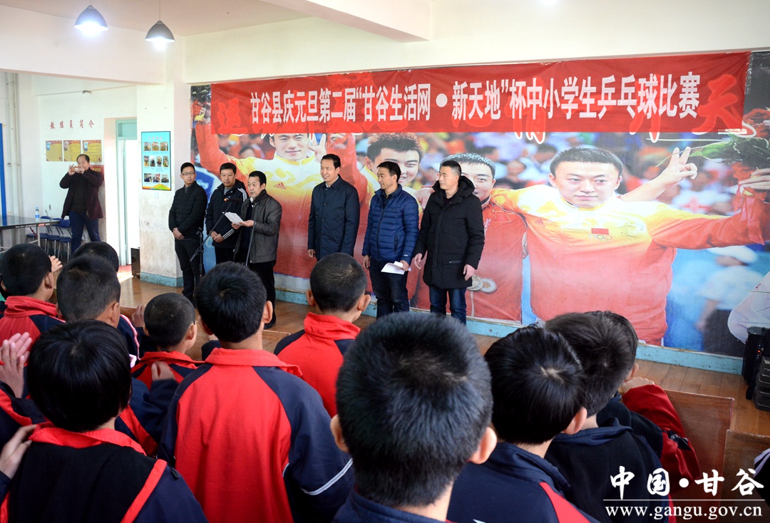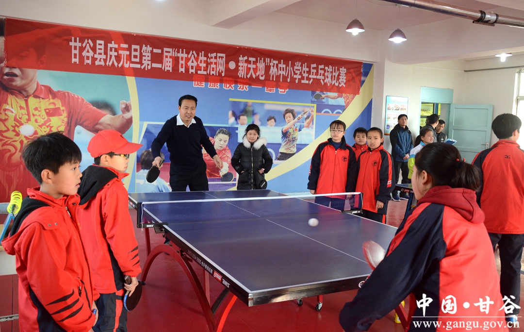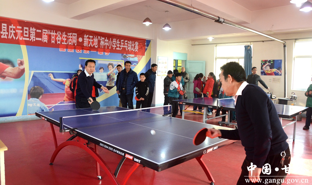 12月27日,甘谷縣舉辦慶元旦第二屆“甘谷生活網(wǎng)·新天地”杯中小學(xué)生乒乓球比賽,縣委常委、宣傳部長(zhǎng)張慶元出席開(kāi)幕式并講話,縣教體局及全縣中小學(xué)校參賽選手參加。