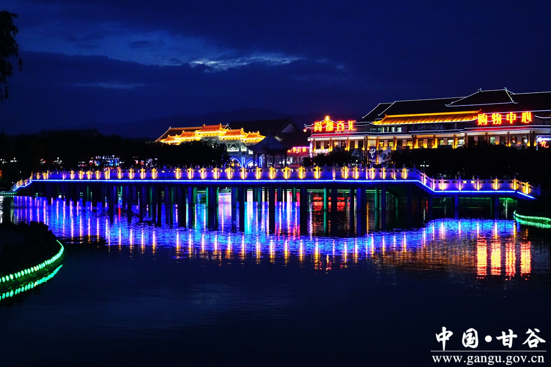 公園彩燈盡啟,七彩流蘇于晚風(fēng)里飄蕩,渲人耳目的景園牌坊,是鑲嵌在夜空的閃亮明珠。