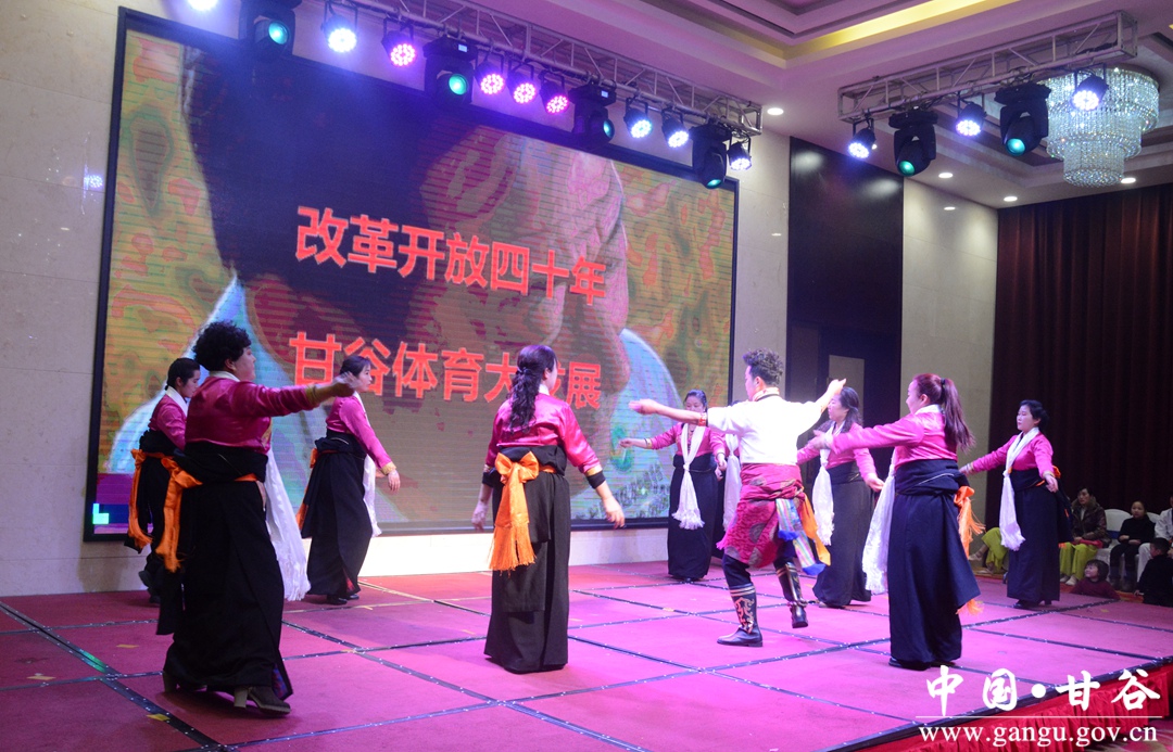 晚會在氣勢磅礴的《藏歌聯(lián)唱》中拉開帷幕,優(yōu)美的葫蘆絲獨(dú)奏《青花瓷》,精彩的瑜伽表演引人入勝,朗誦《少年中國說》等節(jié)目使現(xiàn)場氣氛熱烈;鞭桿太子游四門,徒手拳猛虎挖心拳,軟器械流星錘,以及姜姑劍等傳統(tǒng)武術(shù)表演令人眼花繚亂,把演出的氣氛推向了高潮,贏得了觀眾連綿不絕的喝彩。節(jié)目以舞蹈、獨(dú)唱、武術(shù)等多種藝術(shù)形式,謳歌贊頌了改革開放40周年全縣體育工作所取得的成就,用最真摯的情感、最深情嘹亮的歌聲、最歡快奔放的舞姿,紀(jì)念改革開放四十周年。
