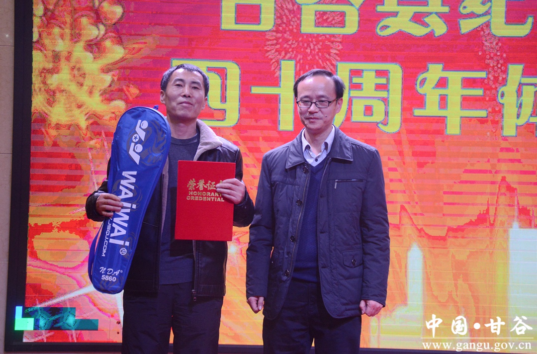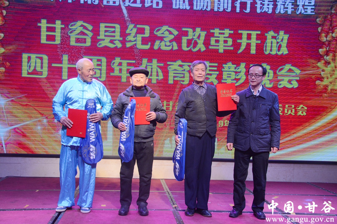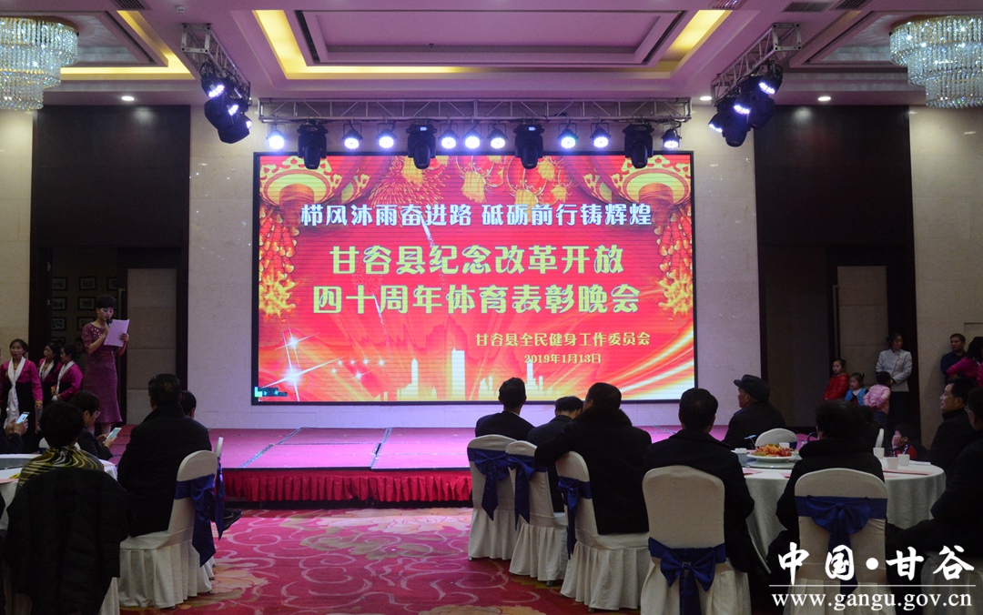 1月13日晚,由甘谷縣委宣傳部主辦、縣體育中心承辦的“砥櫛風(fēng)沐雨奮進(jìn)路 砥礪前行鑄輝煌”甘谷縣慶祝改革開放四十周年體育表彰晚會舉行,縣委常委、宣傳部長張慶元,副縣長王瑾,縣政協(xié)原主席李愛菊,縣人大原副主席謝興明,縣政協(xié)原副主席王建義及麥積區(qū)、武山縣體育中心負(fù)責(zé)人出席表彰晚會并為獲獎代表頒獎。