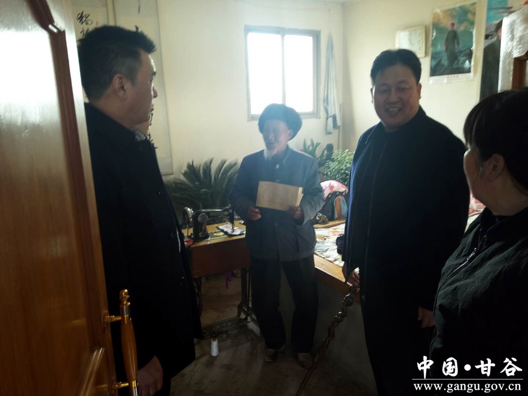 春節(jié)臨近,基層困難群眾的生活冷暖無不牽動著縣領(lǐng)導(dǎo)的心。1月28日,甘谷縣副縣長許維正、縣政協(xié)副主席田小龍深入大石鎮(zhèn)走訪慰問老黨員、生活困難老黨員、五保戶、特困供養(yǎng)戶和高齡老人,為他們送去了慰問金,帶去了黨和政府的溫暖關(guān)懷與新春祝福。