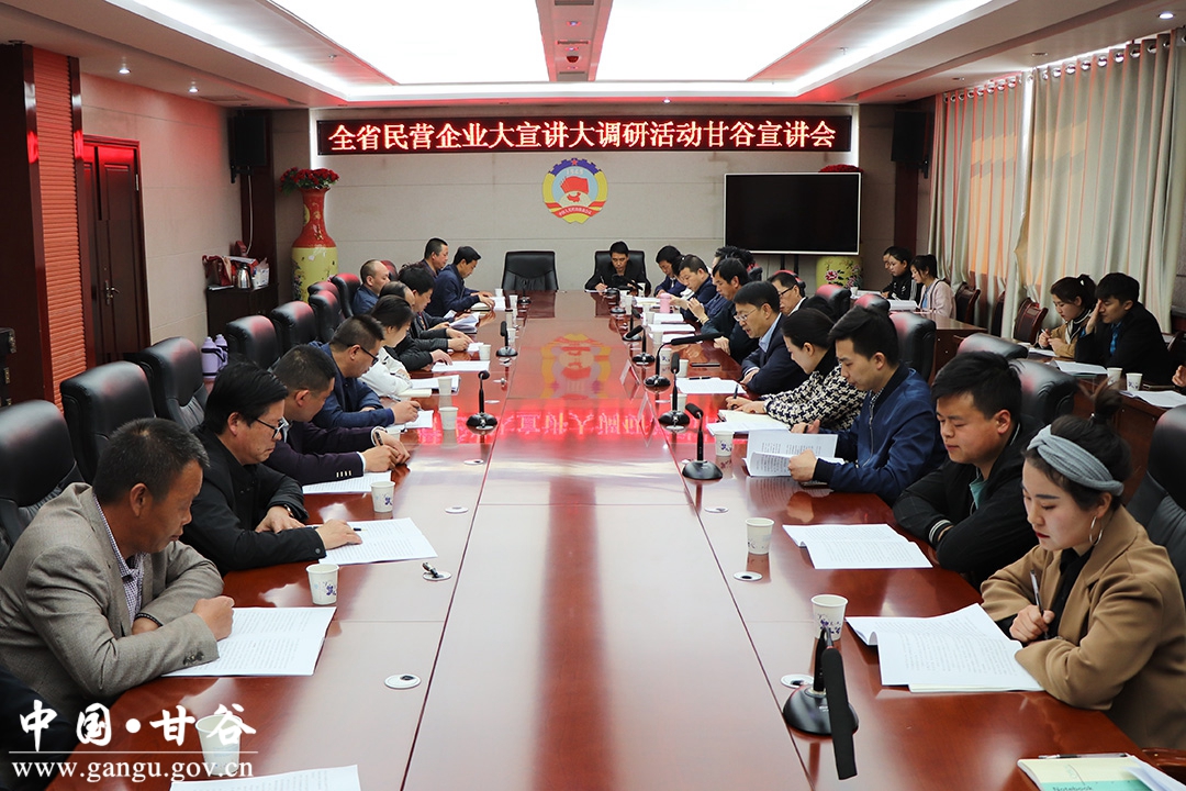 4月16日,省委統(tǒng)戰(zhàn)部副部長、省工商聯(lián)黨組書記趙少智帶領(lǐng)調(diào)研組一行,來甘谷縣開展民營企業(yè)大宣講大調(diào)研活動,省工商聯(lián)執(zhí)委、方大碳素公司總經(jīng)理黨錫江作了宣講報告;縣委常委、政法委書記馬福勝,副縣長高麗,縣工商聯(lián)執(zhí)委、商會負(fù)責(zé)人、非公經(jīng)濟(jì)代表人士、工商聯(lián)干部40余人參加會議。